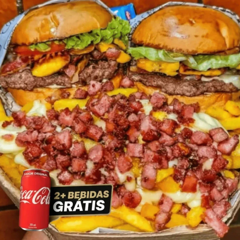 2 Burgões da Casa + Batata com cheddar e bacon 500g + 2 Refrigerantes 350 ml